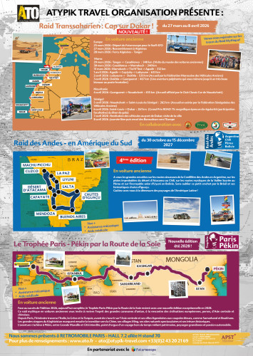 Notre grande nouveauté 2026. Un raid en voitures anciennes qui vous fera revisiter un tracé extraordinaire reliant l'Europe au Sénégal en passent par le Maroc et la Mauritanie. A vous les envolées sur les pistes du Sahara, le passage par le légendaire col du Tizi N'Test, la visite de Cap Juby à la recherche d'Antoine de Saint Exupéry, la nuit dans un bivouac extraordinaire proche de la frontière Mauritanienne, laissez vous tenter par la première édition de cette formidable aventure !